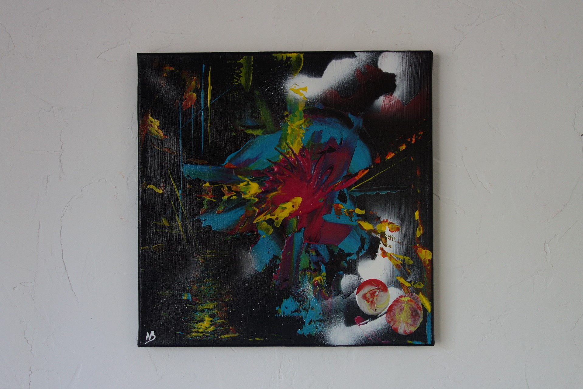 Cette création abstraite noire et colorée est une œuvre unique et originale qui viendra sublimer votre intérieur en y ajoutant une touche de raffinement à la pièce.